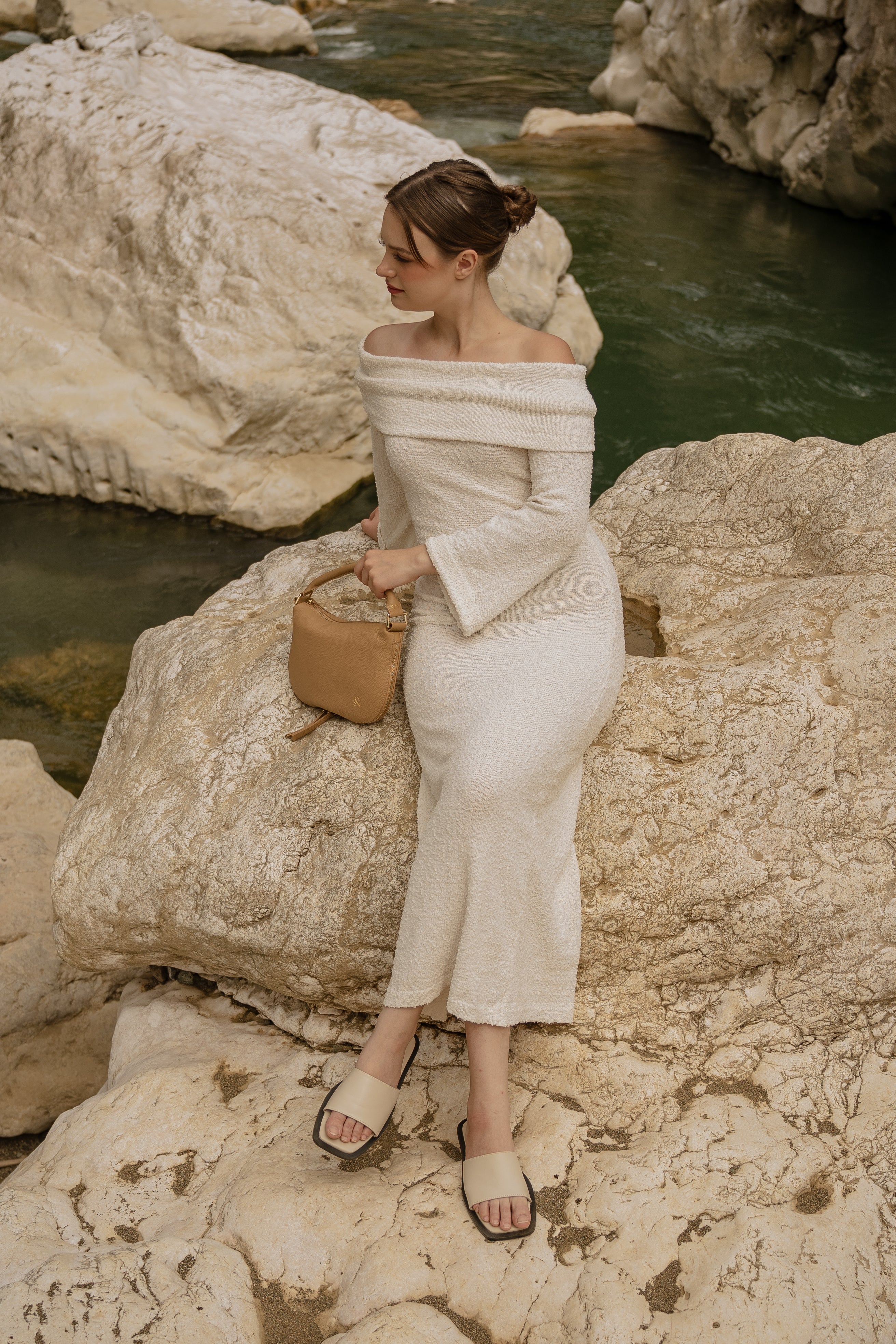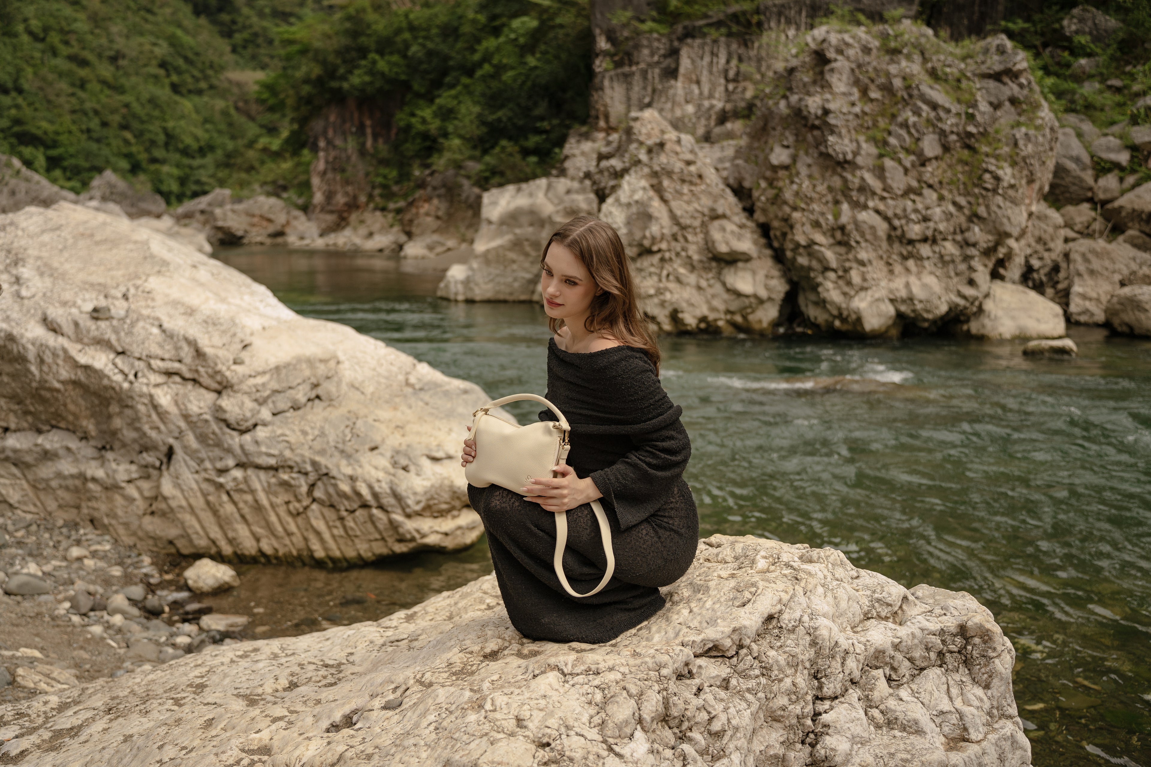 The Daily Flow, inspired by the rhythm of the waves—how they ebb and flow with ease. Its form follows this movement: fluid, effortless, and adaptable. With a simple unzip, it expands for your day; zipped closed, it transforms into a refined silhouette for the night. A seamless transition from motion to stillness.